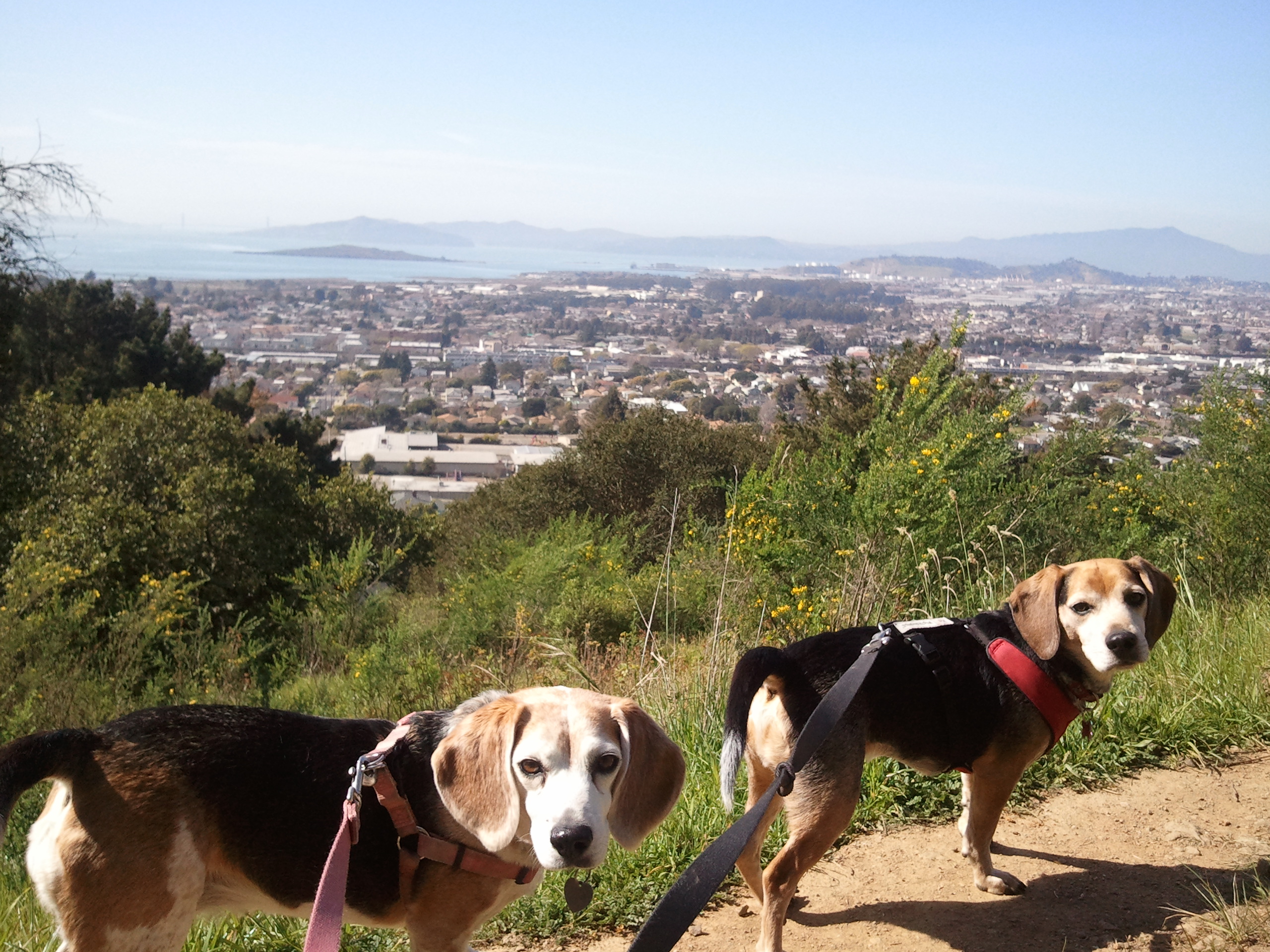 We went to a nice park called “The Douglas Family Preserve” in Santa Barbara, where there are acres of trails and dogs are mostly allowed off leash on all of them. Since our dogs are BEAGLES [yes, with capital letters], we had them on the leash the whole way. They still have a great time, but we don’t have to chase them down.